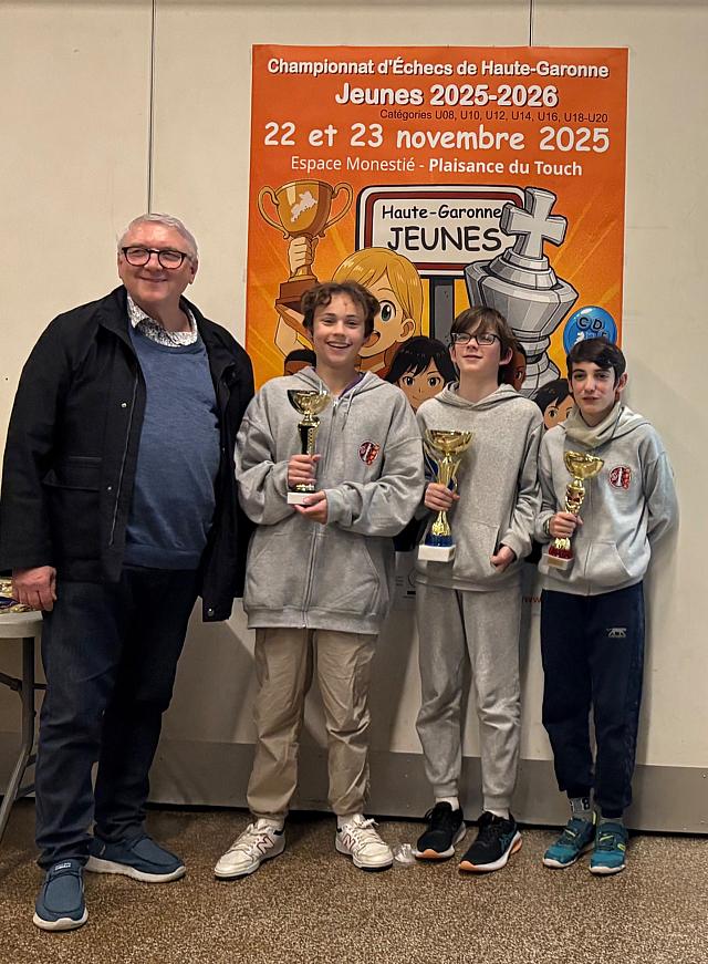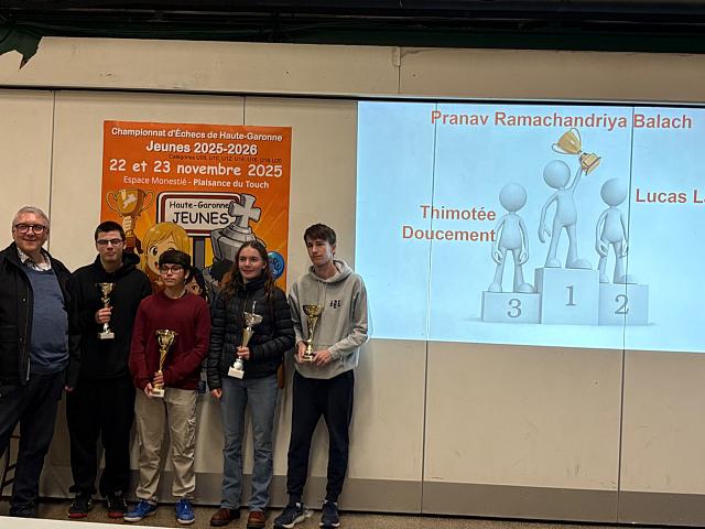 Voici les podiums et qualifiés (pour le championnat de ligue Occitanie) du championnat jeunes d’échecs de Haute-Garonne 2024/2025.